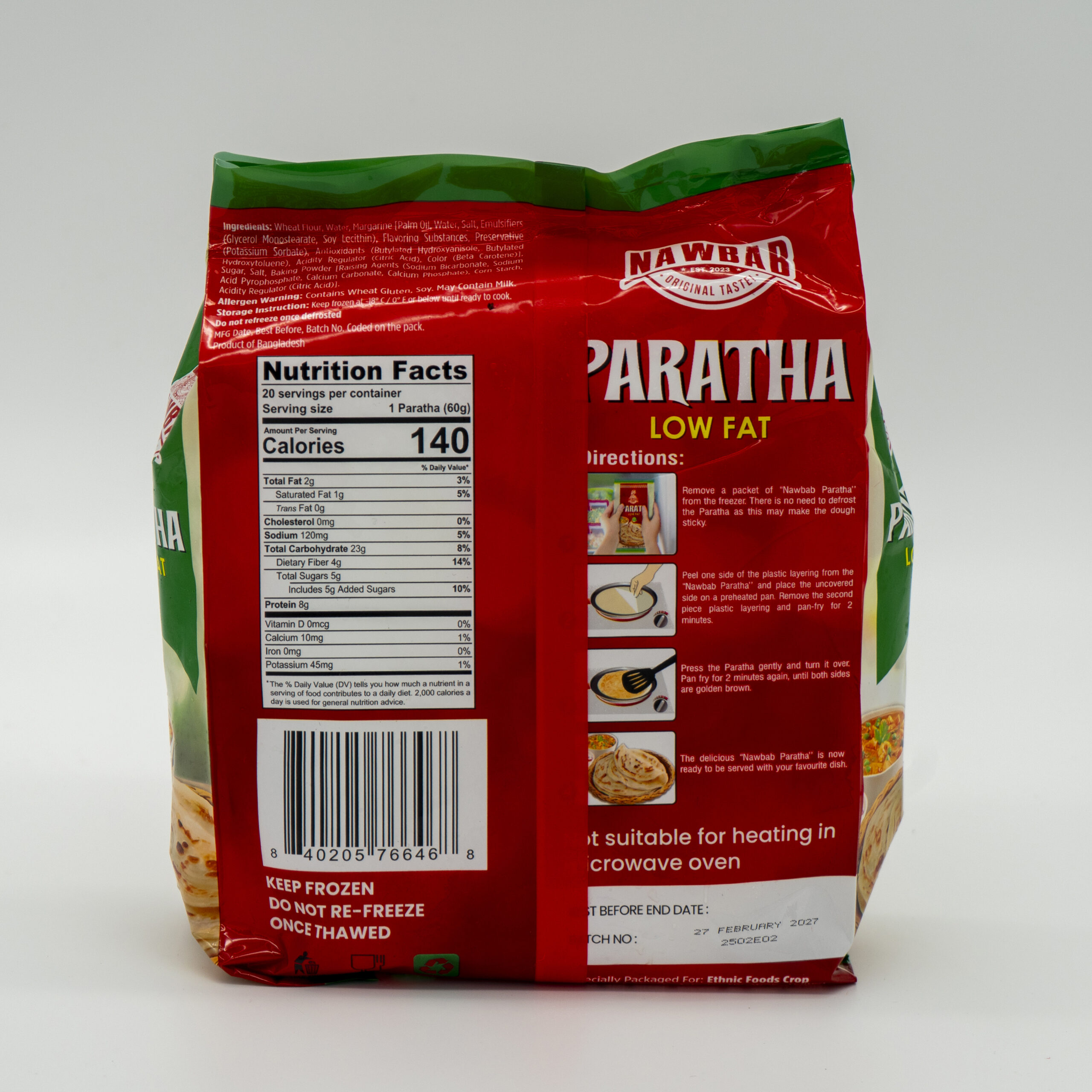 Nawab Paratha (Low Fat) 1200 GM (60 GM x 20 PCS/PACK X 6 PACK/CTN)
